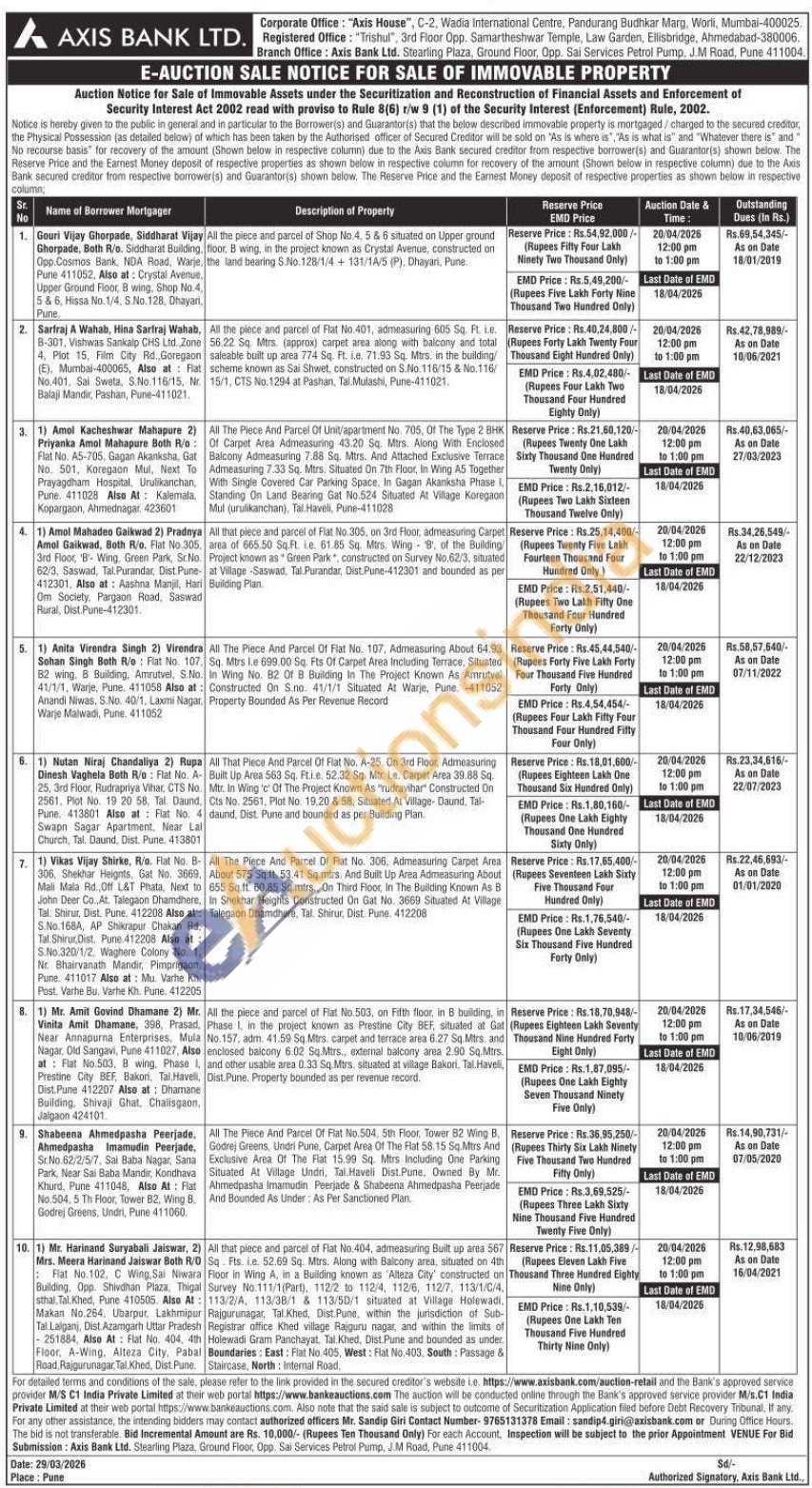 All the piece and parcel of Flat No.503, on Fifth floor, in B building, in Phase I, in the project known as Prestine City BEF, situated at Gat No.157, adm. 41.59 Sq.Mtrs. carpet and terrace area 6.27 Sq.Mtrs. and enclosed balcony 6.02 Sq.Mtrs., external balcony area 2.90 Sq.Mtrs. and other usable area 0.33 Sq.Mtrs. situated at village Bakori, Tal. Haveli, Dist. Pune. Property bounded as per revenue record