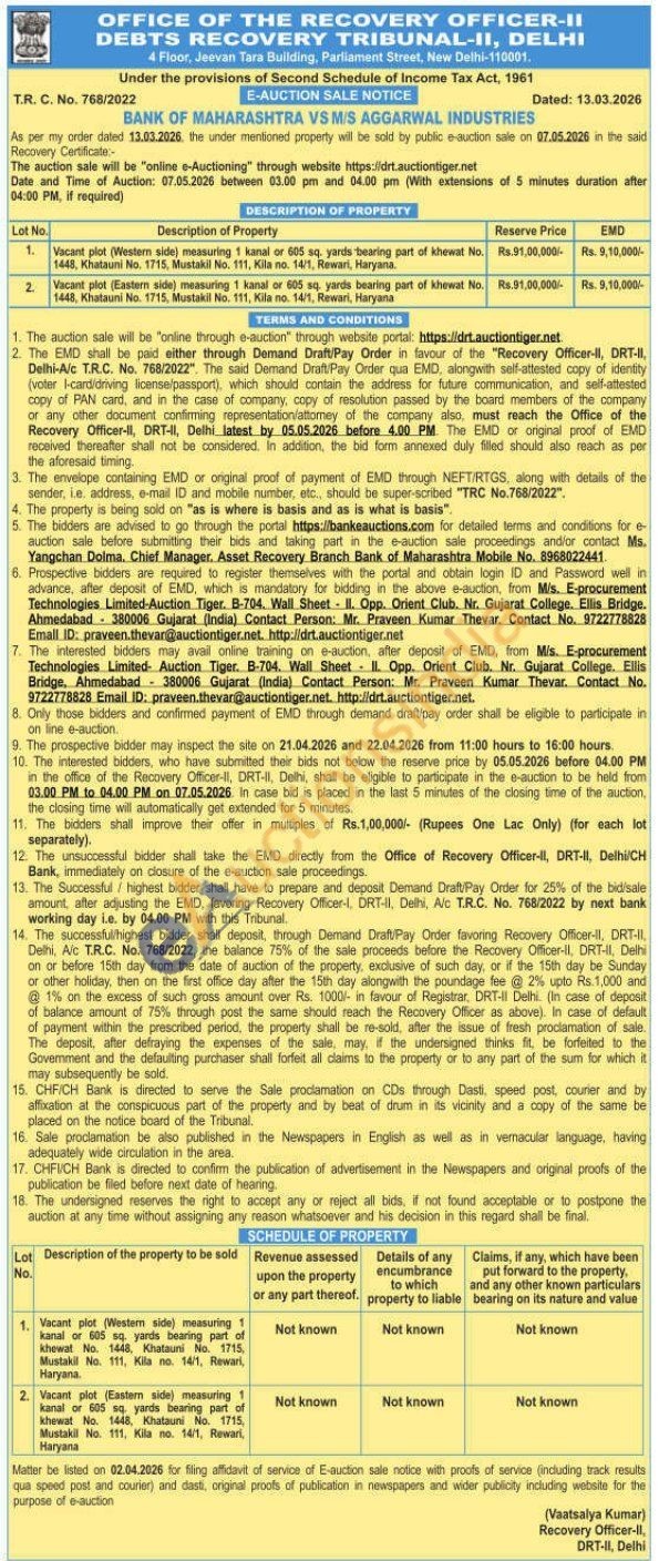 Vacant plot (Eastern side) measuring 1 kanal or 605 sq. yards bearing part of khewat No. 1448, Khatauni No. 1715, Mustakil No. 111, Kila no. 14/1, Rewari, Haryana