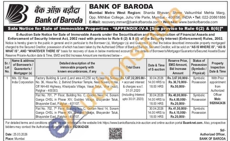 Factory Building & Land (Land area 43,250 sq ft) bearing Survey No. 36, Hissa No. 2, Behind Shankar Temple, Near Novelty Hotel, Off NH-48 Highway, Khairpada Village, Vasai Taluk, Virar (east), Palghar-400303.