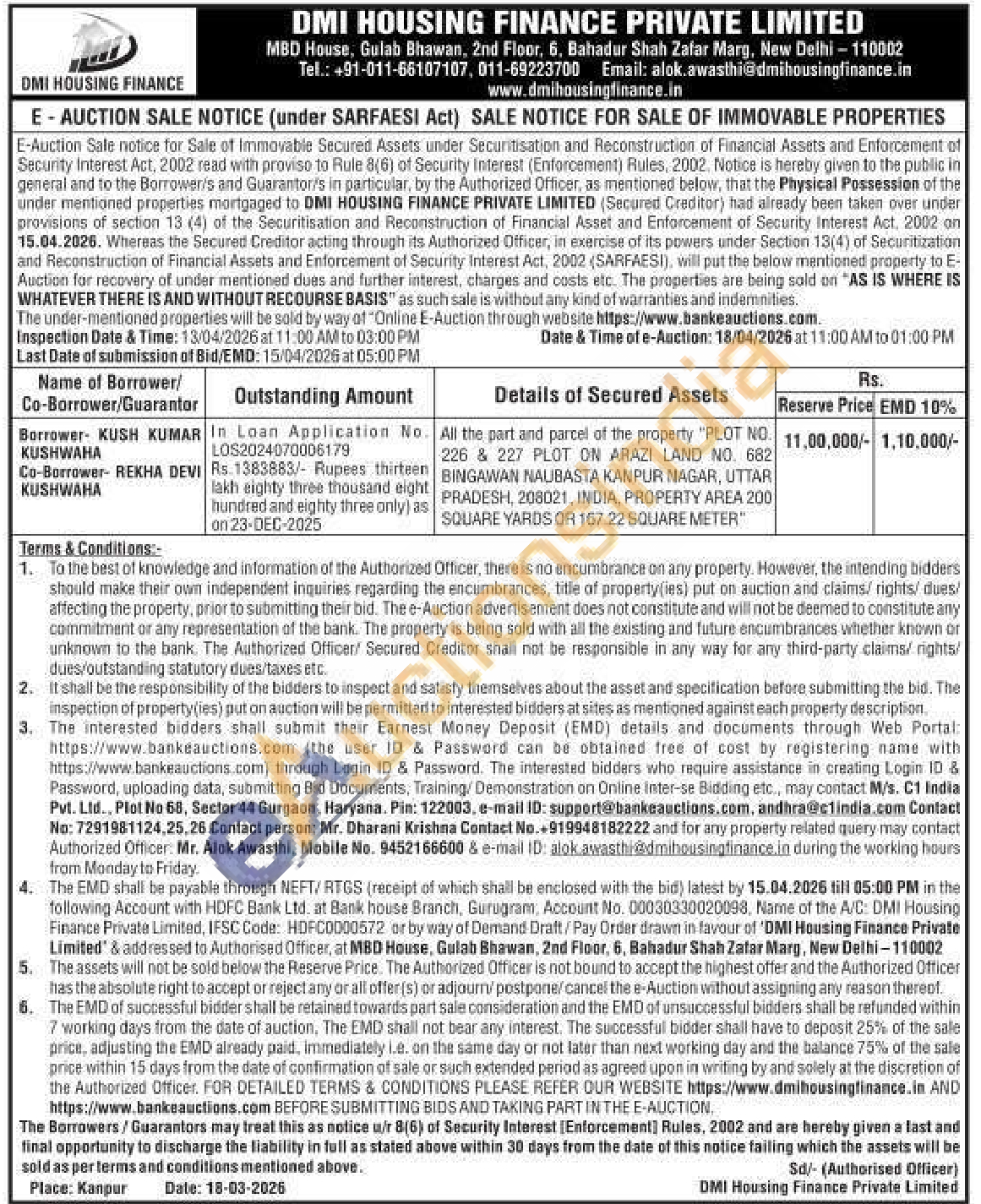 All the part and parcel of the property "PLOT NO. 226 & 227 PLOT ON ARAZI LAND NO. 682 BINGAWAN NAUBASTA KANPUR NAGAR, UTTAR PRADESH, 208021, INDIA, PROPERTY AREA 200 SQUARE YARDS OR 167.22 SQUARE METER"