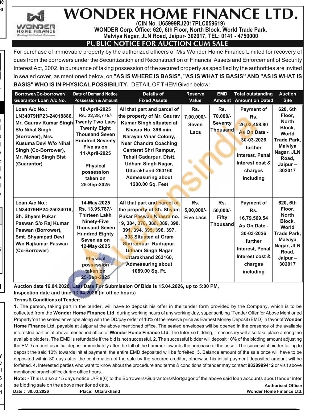 All that part and parcel of the property of Mr. Gaurav Kumar Singh situated at Khasra No. 396 min Narayan Vihar Colony, Near Chandra Coaching Centerat Shri Rampur, Tehsil Gadarpur, Distt. Udham Singh Nagar, Uttarakhand-263160 Admeasuring about 1200.00 Sq. Feet