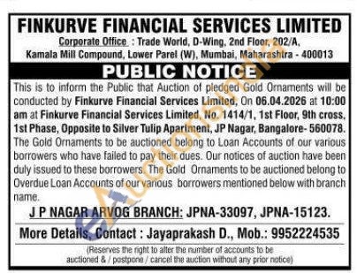 FINKURVE FINANCIAL SERVICES LIMITED Gold Auctions Auction in Mumbai