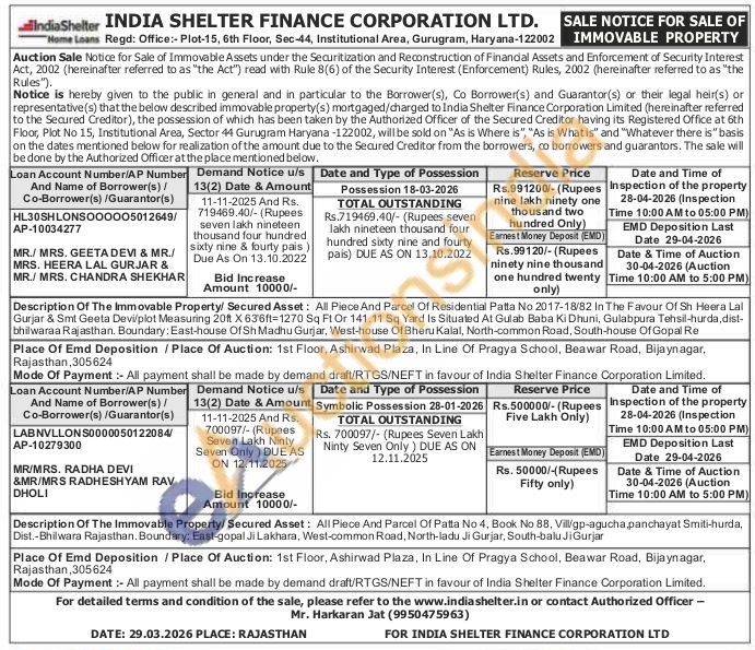 Authorized Officer Mr. Harkaran Jat (Contact No : 9950475963)