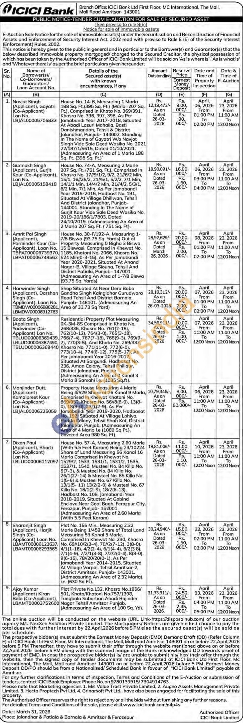 2) House No. 74-A, Measuring 2 Marle 207 Sq. Ft. (751 Sq. Ft.), Comprised In Khasra No. 17//9/1/2, 9/2, 21//6/2 Min, 15/1, 16//25/2, 21//5/1, 5/2/2, 7/1 Min, 14/1/1 Min, 14/4/2 Min, 21//4/2, 5/3/1, 6/2 Min, 7/1 Min, As Per Jamabandi Year 2015-2016, Hadbast No. 191, Situated At Village Dhillwan, Tehsil And District Jalandhar, Punjab-144001. Standing In The Name of Gurjit Kaur Vide Sale Deed Wasika No. 2019-20/186/1/7803, Dated 24/10/2019. (Admeasuring An Area of 2 Maria 207 Sq. Ft. (751 Sq. Ft