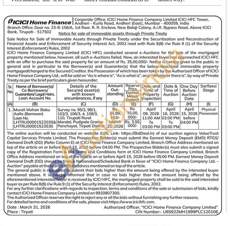 Survey no. 95/2, 98/1, 102/3, 106/3, 4, 109/3, 110, Tirupati Rural Mandal, Pudipala Grama Panchayat, Tirpati District