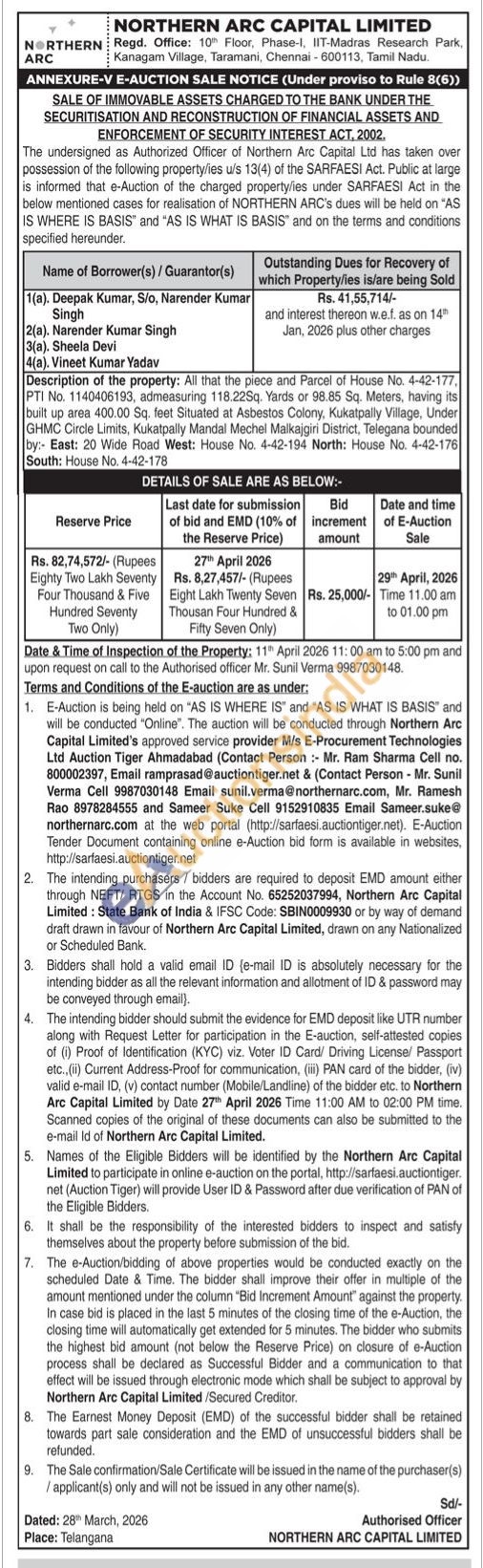 PTI No. 1140406193, admeasuring 118.22Sq. Yards or 98.85 Sq. Meters, having its built up area 400.00 Sq. feet Situated at Asbestos Colony, Kukatpally Village, Under GHMC Circle Limits, Kukatpally Mandal Mechel Malkajgiri District, Telegana bounded by: East: 20 Wide Road West: House No. 4-42-194 North: House No. 4-42-176 South: House No. 4-42-178