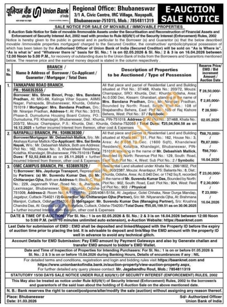 All that piece and parcel of Residential Land and Building situated at Khata No.: 151, Plot No.: 162, House No.: 3, Area: Ac.0.036.73 Dec. (1600 Sqft), Khandelwal Residency, Kolathia, Khandagiri, Bhubaneswar, PIN-751019, standing in the name of Mr. Debashish Mallick, Bounded by North: Revenue Plot No.: 129, South: Road, East: Sub Plot No.: 4, West: Sub Plot No.: 2/Symbolic