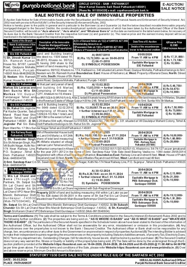 All that part and parcel of land and building 0-6 Marlas Comprising of Khewat no-12/11, khatauni no-18, khasra no-9R/1 5/2(4-0) 9R/16/1 (4-0), Kita-2, tadadi 8 kanals having 6/160 share to the extent of the land measuring 0-6 Marlas, Situated in the Revenue Estate of Village Gulpur H.B No-248, Tehsil and Distt Pathankot belongs to Smt Sunita W/o Sh Markas