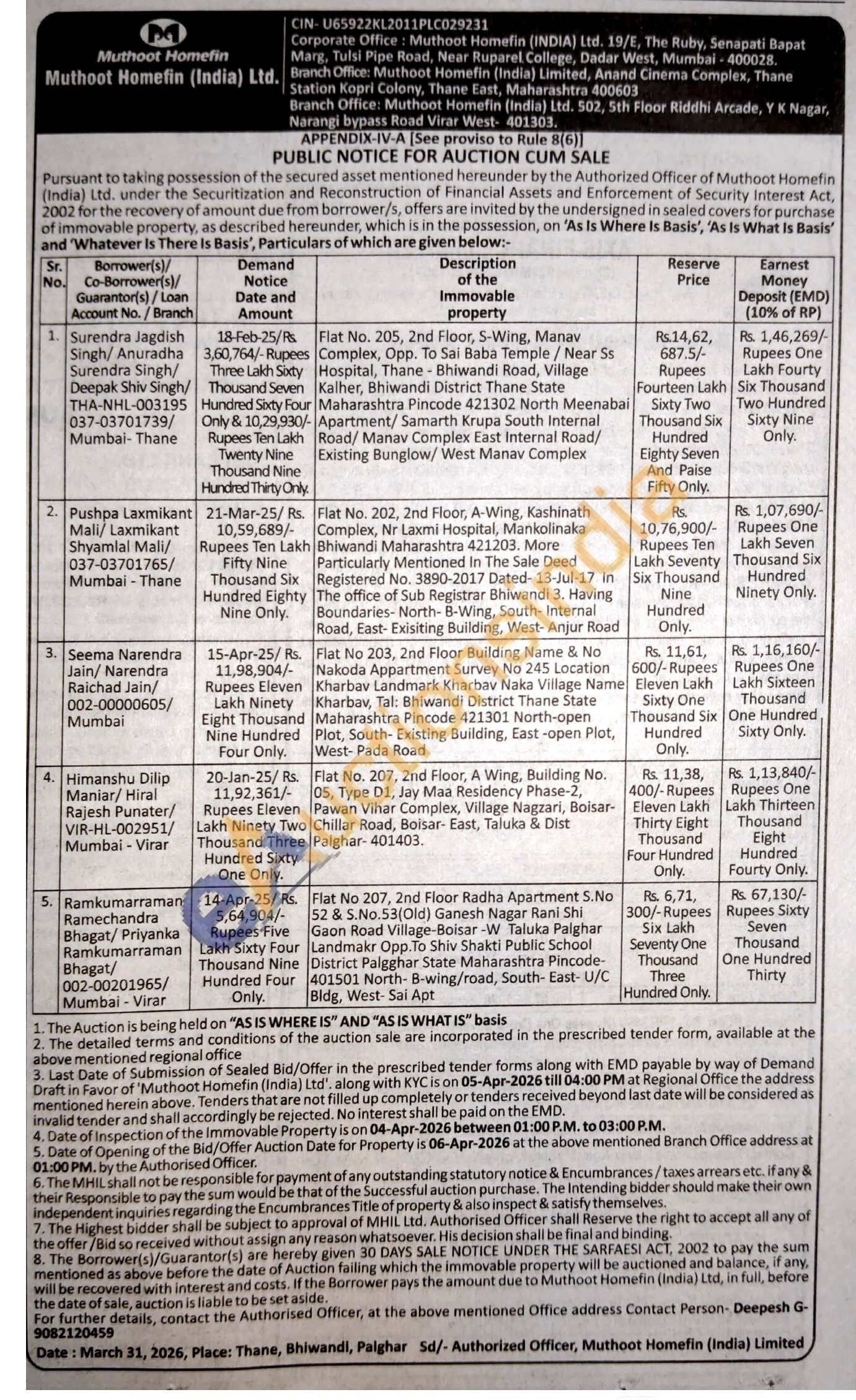 5. Flat No 207, 2nd Floor Radha Apartment S.No 52 & S.No.53(Old) Ganesh Nagar Rani Shi Gaon Road Village-Boisar-W Taluka Palghar Landmakr Opp. To Shiv Shakti Public School District Palgghar State Maharashtra Pincode-401501 North-B-wing/road, South-East-U/C Bldg, West-Sai Apt