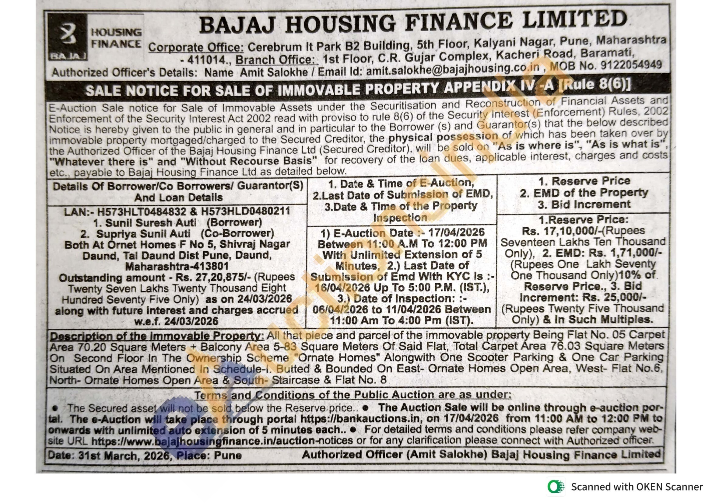 Amit Salokhe / Email Id: amit.salokhe@bajajhousing.co.in, MOB No. 9122054949