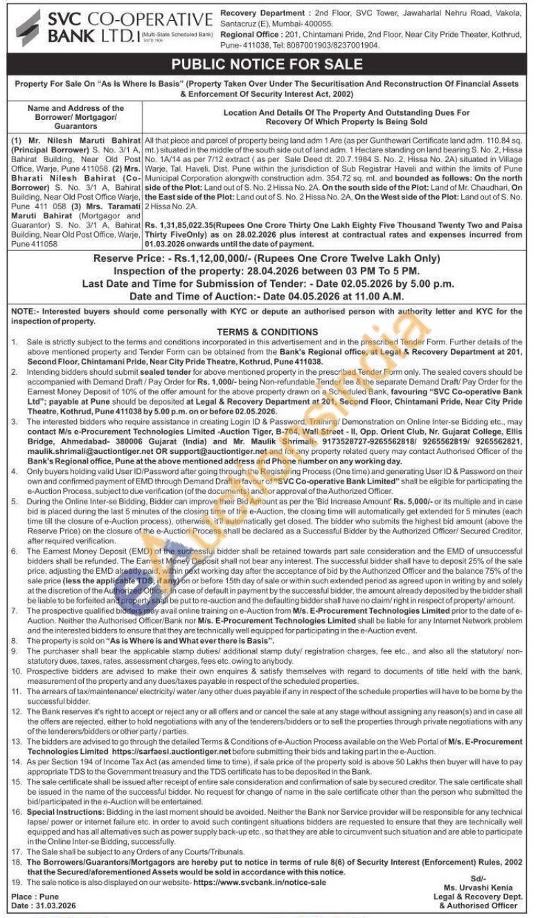 All that piece and parcel of property being land adm 1 Are (as per Gunthewari Certificate land adm. 110.84 sq. mt.) situated in the middle of the south side out of land adm. 1 Hectare standing on land bearing S. No. 2. Hissa No. 1A/14 as per 7/12 extract (as as per Sale Deed dt. 20.7.1984 S. No. 2, Hissa No. 2A) situated in Village Warje, Tal. Haveli. Dist. Pune within the jurisdiction of Sub Registrar Haveli and within the limits of Pune Municipal Corporation alongwith construction adm. 354.72 sq. mt. and bounded as follows: On the north side of the Plot: Land out of S. No. 2 Hissa No. 2A. On the south side of the Plot: Land of Mr. Chaudhari, On the East side of the Plot: Land out of S. No. 2 Hissa No. 2A, On the West side of the Plot: Land out of S. No. 2 Hissa No. 2A