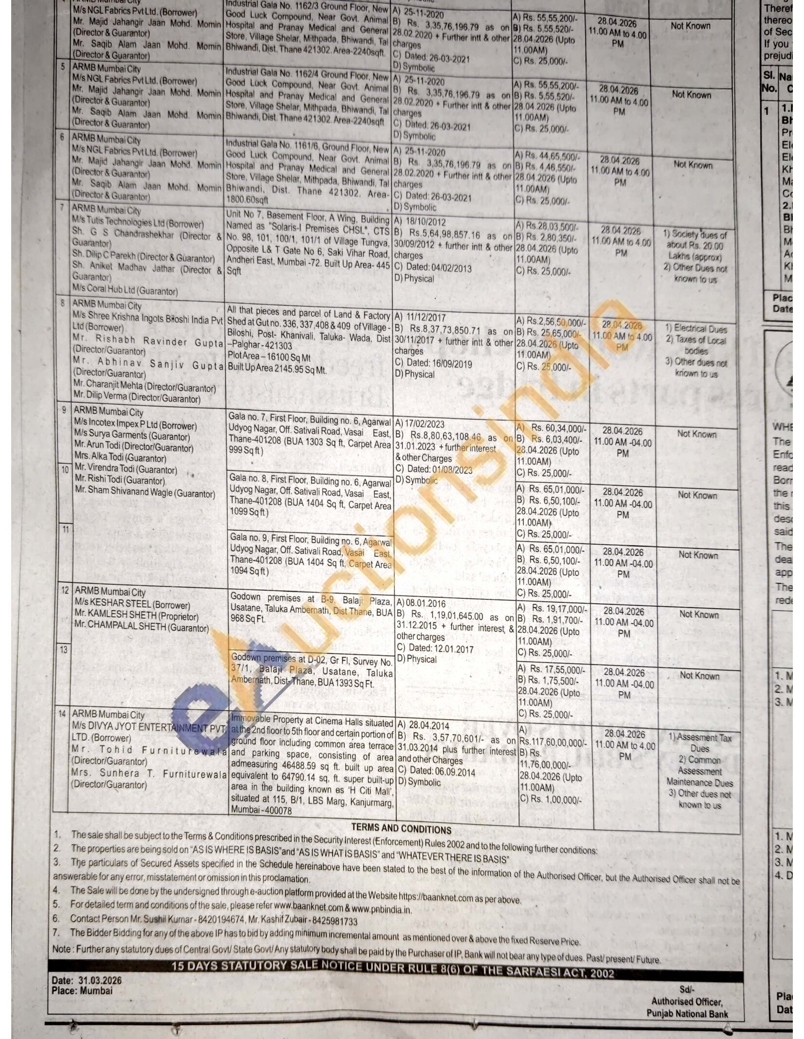 Immovable Property at Cinema Halls situated at the 2nd floor to 5th floor and certain portion of ground floor including common area terrace and parking space, consisting of area admeasuring 46488.59 sq ft. built up area area in the building known as 'H Citi Mall', situated at 115, B/1, LBS Marg, Kanjurmarg, Mumbai-400078 equivalent to 64790.14 sq. ft. super built-up