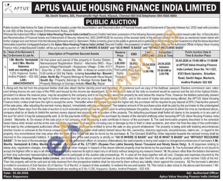 All that piece and parcel of the property in Guntur District-Narasaraopet Registration District - Macheira SRO - Kop-pumuru Village Panchyath-Koppunuru Village-D.No. 411/1 Door No. 2-123-Assess No. 948-in these an extent of Ac 0.05 cents or 242 Sq Yards-is being bounded by:-Bound-aries: North By: Property Belongs to Ramavath Hena Nayak South By: Property Belongs to Mudige Konda East By: Property Belongs to Gurrapu Ankallu West By: Bazar