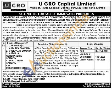 All That Piece And Parcel Of Property Of Residen-sal Flat No.7-A Having Sq. Feet 1725-00 On 7th Floar Of The Building Known As" "Amrut-Prabhat Apartment Situated At "Dr. Yagnik Road & 20 New Jagnath Plot Corner Of C.S. No. 1896p of Rajkot City Of Rajkot Of Dist. Rajkot In The State Of Gujarat And Bounded As: North-20 New Jagnath Plot Road South- Flat No.7-B East - Dr. Yagnik Road West-Open Parking