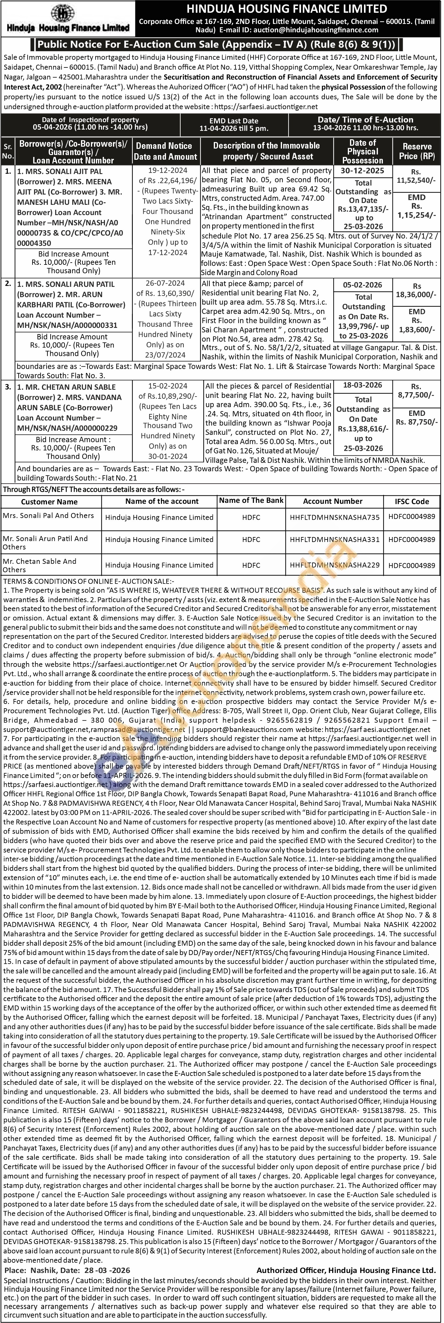 All the pieces & parcel of Residential unit bearing Flat No. 22, having built up area Adm. 390.00 Sq. Fts., i.e., 36 24. Sq. Mtrs, situated on 4th floor, in the building known as "Ishwar Pooja Sankul", constructed on Plot No. 27, Total area Adm. 56 0.00 Sq. Mtrs., out of Gat No. 126, Situated at Mouje/ Village Palse, Tal & Dist Nashik. Within the limits of NMRDA Nashik. And boundaries are as Towards East: - Flat No. 23 Towards West: - Open Space of building Towards North: - Open Space of building Towards South: - Flat No. 21