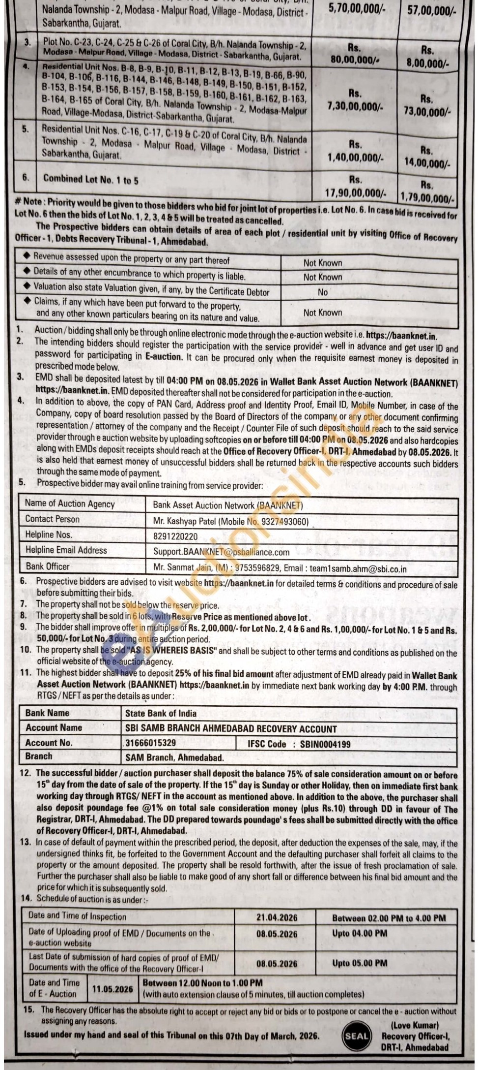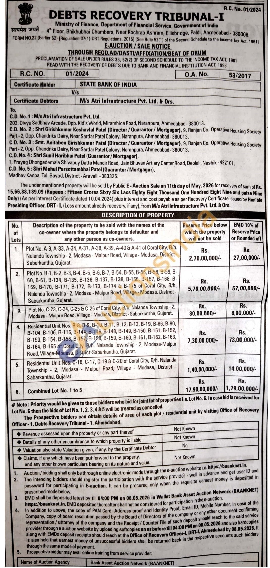 Residential Unit Nos. C-16, C-17, C-19 & C-20 of Coral City, B/h. Nalanda Township 2, Modasa Malpur Road, Village Modasa, District -Sabarkantha, Gujarat