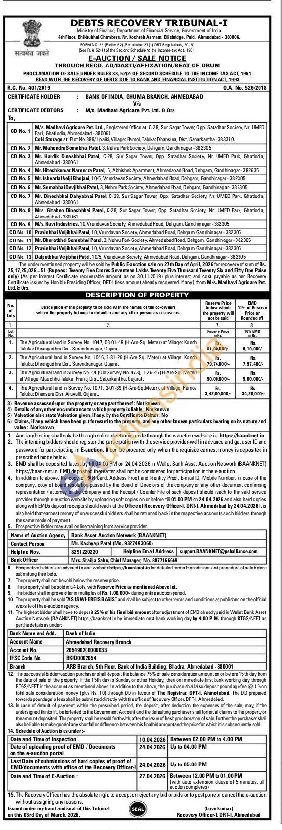 The Agricultural land in Survey No. 1071, 3-01-89 (H-Are-Sq.Meter), at Village: Ramos Taluka: Dhansura Dist. Aravalli, Gujarat