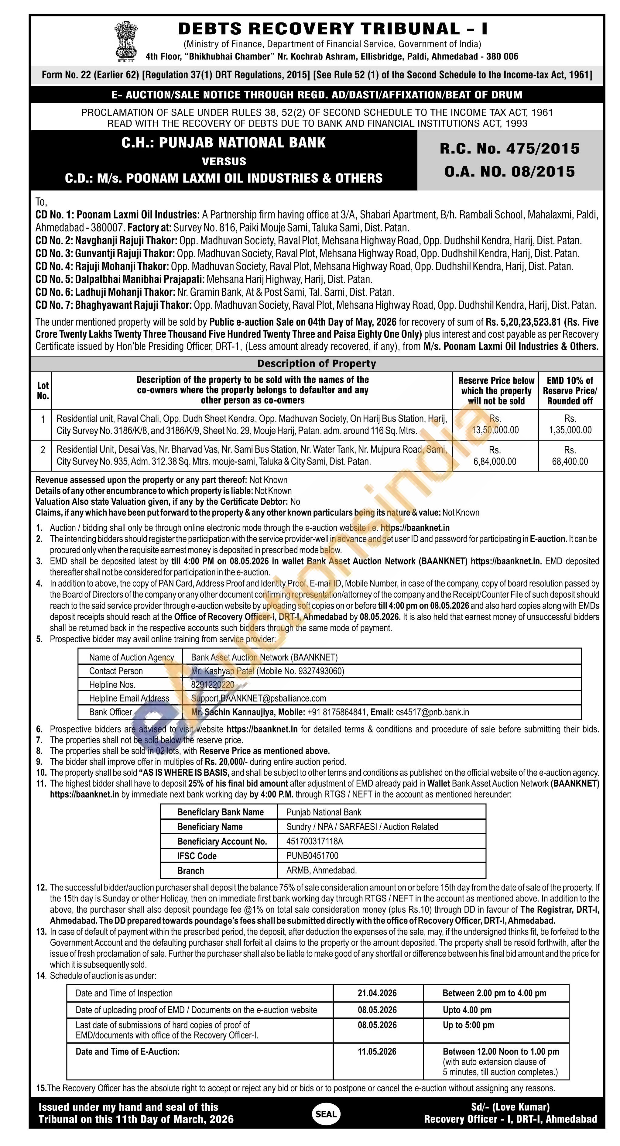 Residential Unit, Desai Vas, Nr. Bharvad Vas, Nr. Sani Bus Station, Nr. Water Tank, Nr. Mupura Road, Sam, City Survey No. 935, Adm. 312 38 Sq. Mrs. mouje-sam, Taluka & City Sam, Dist. Patan