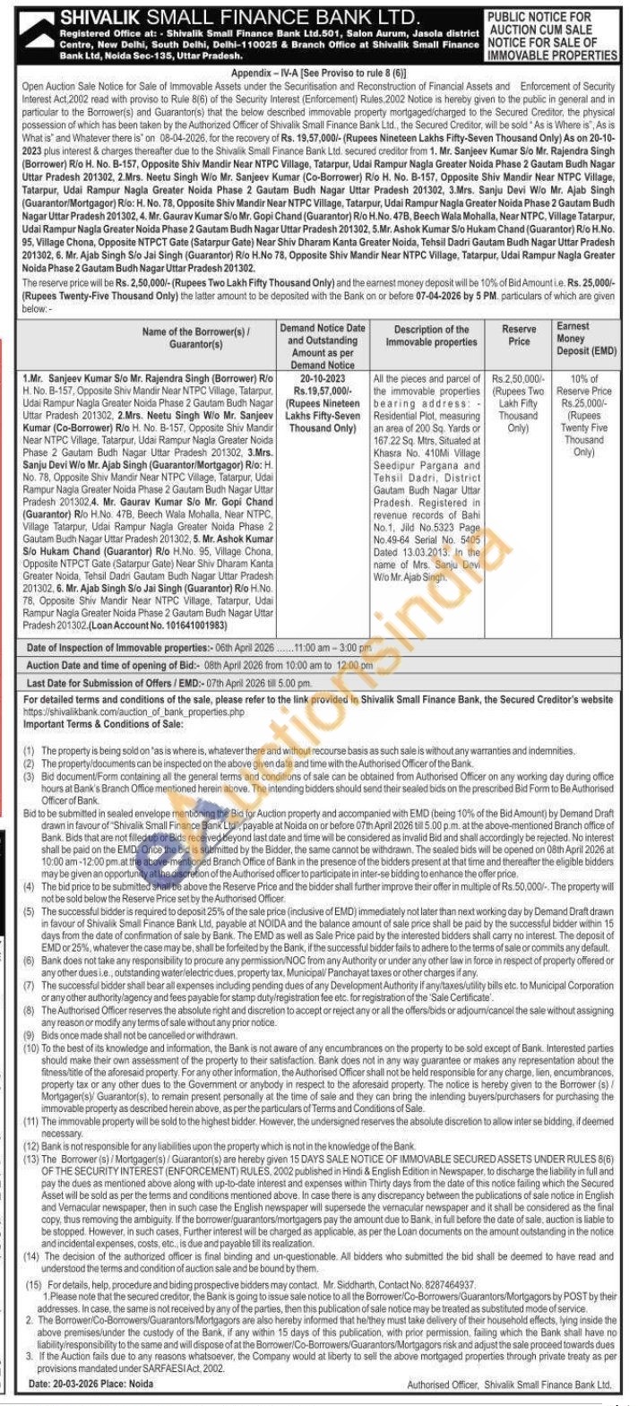 All the pieces and parcel of the immovable properties bearing address Resident Plot measuring an as of 2000 Sq. Yands or 167.22 5 Min. Situated al Kheers No. 450M V Seedipur Pargana and Tehsil Daitri. District Gautam Buch Nagar Ultr Pradesh. Registered in revenue records of Ba No. 1, Jid 5323 Page No.49-64 Sels No Dated 13.03.2013 name of Mrs. Sani Devi Wo Mr. Ajat Singh