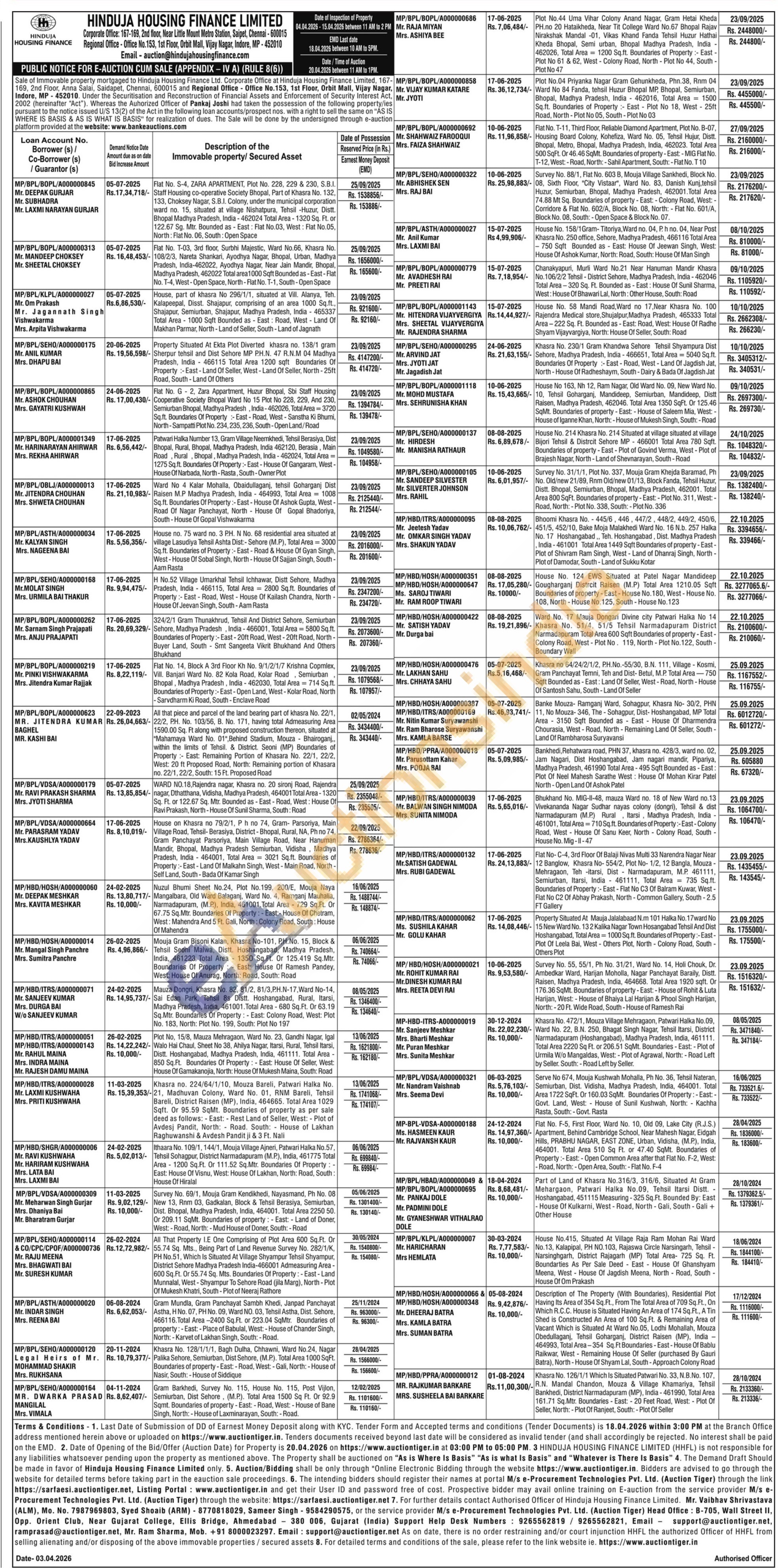 contact Authorised Officer Mr. Vaibhav Shrivastava (ALM), Mo. No. 7987969803, Syed Shoaib (ARM)-8770818029, Sameer Singh-9584290575