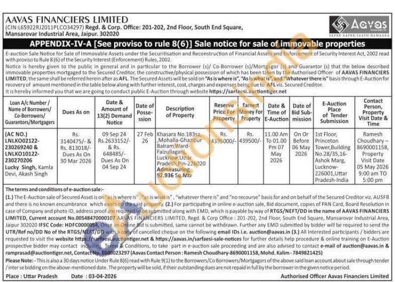 Khasara No.183sa, Mohalla-Ghazipur Balram, Ward-Faizullaganj, Lucknow, Uttar Pradesh, Pin-226020 Admeasuring 92.936 Sq.Mtr