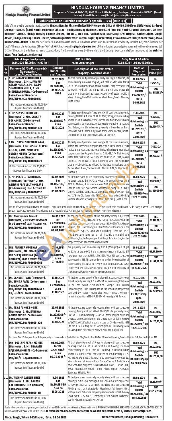 10 All that piece and parcel of property along with construction bearing R. S. No 5/2A having area HO 23R out of which platna 22 having area 50.76 sq. mtrs. induding RCC construction 75.06 sq. mtrs. on it situated at Mudshingi, Tal Karveer, Dist Kolhapur and Schedule property is bounded as: East Colony Road, West RS. No. 5/1 Property of Mr. Shirish Karambe South: Plot No 21, North: Plot No. 23