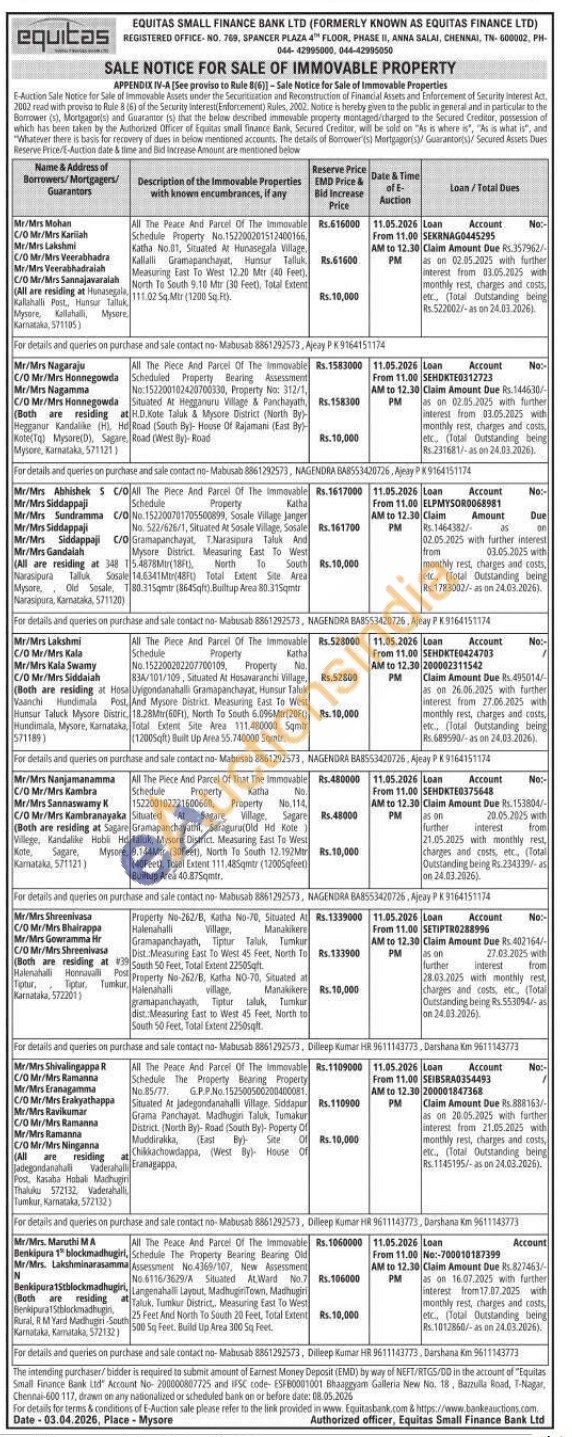 All The Piece And Parcel Of That The Immovable Schedule Property Katha No. 152200102221600660, Property No. 114 Situated At Sagare Village, Sagare Gramapanchayathi, Saraguru(Old Hd Kote) Taluk, Mysore District. Measuring East To West 9.144Mtr (30Feet), North To South 12.192Mtr (40Feet), Total Extent 111.485qmtr (12005qfeet) Builtup Area 40.87Sqmtr.