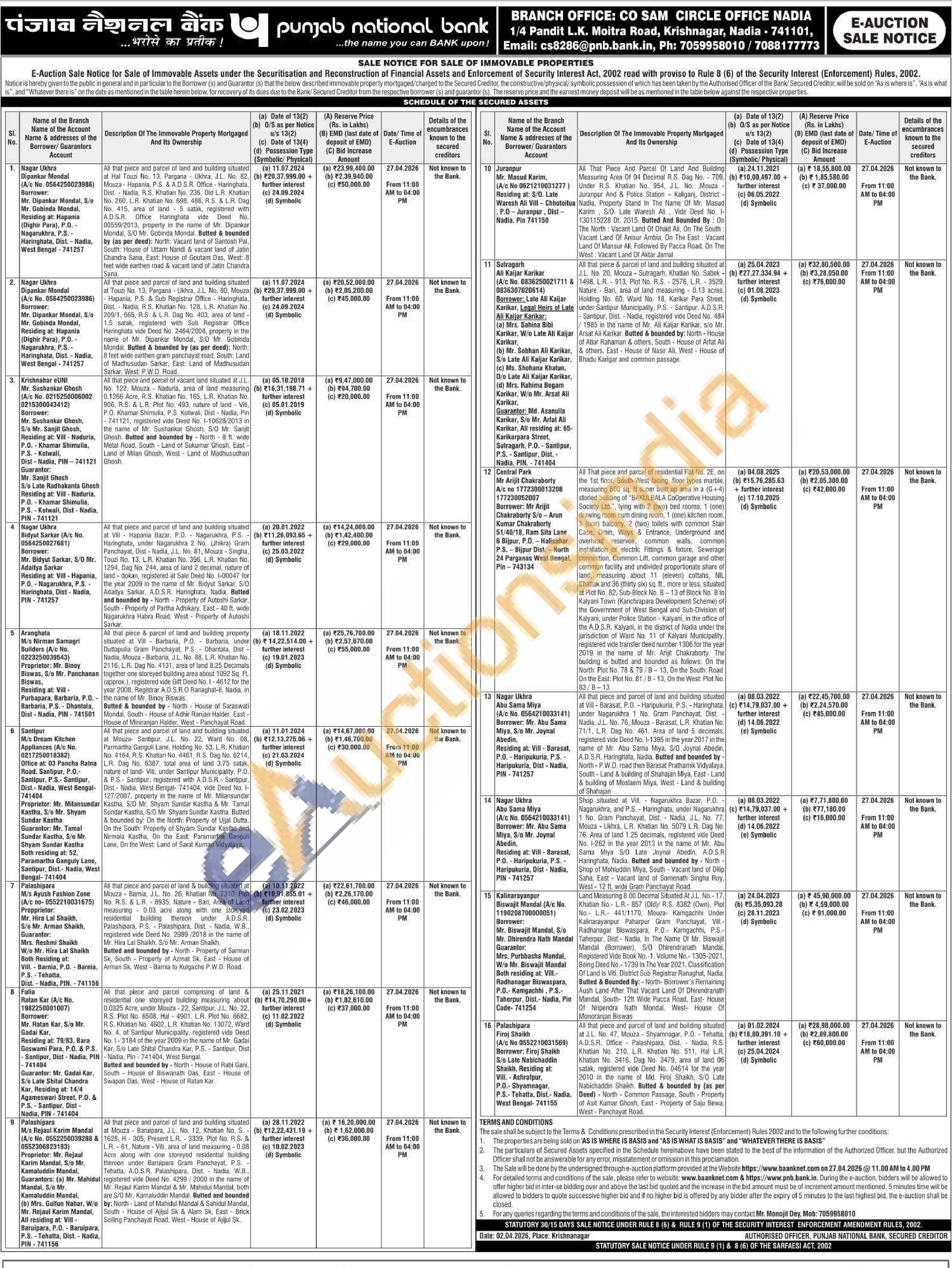 All that piece and parcel of vacant land situated at JL No. 122, Mouza Naduria, area of land measuring 0.1266 Acre, R.S. Khatian No. 165, LR. Khatian No. 906. R.S. & L.R. Plot No. 493, nature of land-Viti, P.O. Khamar Shimulia, P.S. Kotwali, Dist-Nadia, Pin -741121, registered vide Deed No. 1-10628/2013 in the name of Mr. Sushankar Ghosh, S/O Mr. Sanjit Ghosh Butted and bounded by North-8 ft. wide Metal Road, South Land of Sukumar Ghosh, East-Land of Milan Ghosh, West Land of Madhusudhan Ghosh.