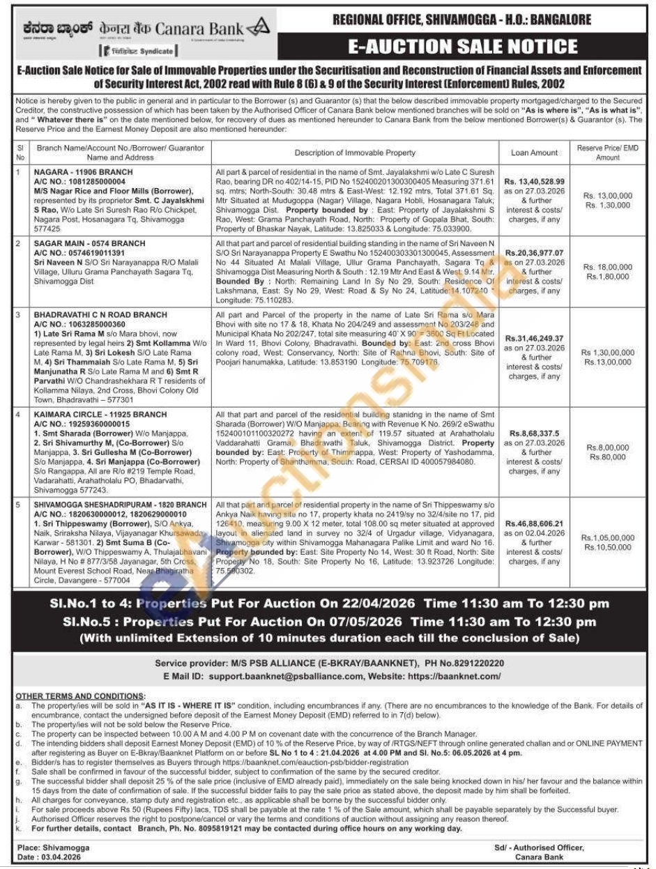All that part and parcel of the residential building staniding in the name of Smt Sharada (Borrower) W/O Manjappa: Bearing with Revenue K No. 269/2 eSwathu 152400101100320272 having an extent of 119.57 situated at Arahatholalu Vaddarahatti Grama. Bhadravathi Taluk, Shivamogga District. Property bounded by: East: Property of Thimmappa, West. Property of Yashodamma, North: Property of Shanthamma, South: Road, CERSAI ID 400057984080