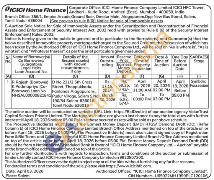 D No 221/2 5th Cross Street, Thoppukkadu, Fairlands Alagapuram Pudur Village, Salem S No 190/54 Salem-636016 Tamil Nadu 636016