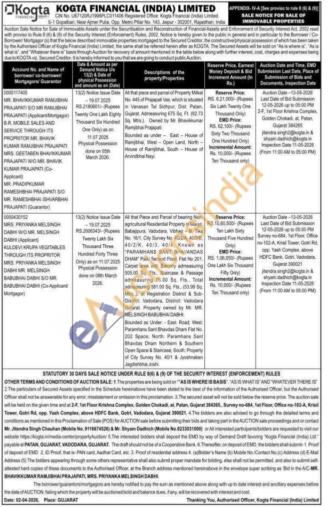 All that Piece and Parcel of bearing Non-agricultural Residential Property in Mauje: Babajipura, Vadodara, Vibhag B, Tika No, 16/1, City Survey No. 40/2/A, 40/2/8, 40/2/K, 40/3, 40/4, Known as PARAMHANS SANT BHAVANDAS DHAM" Paiki Second Floor, Flat No 201, Carpet area with Balcony admeasuring 505.00 Sq. Fts., Staircase & Passage admeasuring 76.00 Sq. Fts, Total admeasuring 581.00 Sq. Fts.. (53.99 Sq. Mirs), at Registration District & Sub-District: Vadodara, District: Vadodara Gujarat. Property owned by Mr. MR. MELSINGH BABUBHAI DABHIBounded as Under, East: Road: West: Paramhans Sant Bhavdas Dham Flat No. 202 Space, North: Paramhans Sant Bhavdas Dham Northern & Southern Open Space & Staircase, South Property of City Survey No. 40/1 & Jyoshnaben Jagdishbhai Joshi