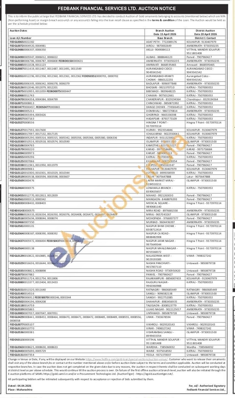 Fedbank Financial Services Ltd Gold Auctions Auction in Kolhapur