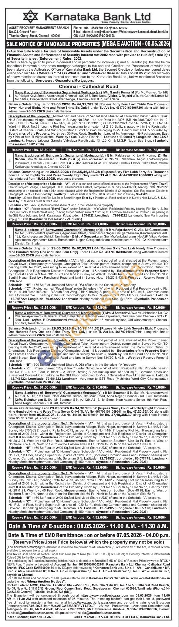 Landmark: Nearby Jaigopal Garodia Vidyalaya Paruthipattu @1.20 Km & M.G.R Nagar Bus Stop. (Symbolic Possession 10.02.2026)