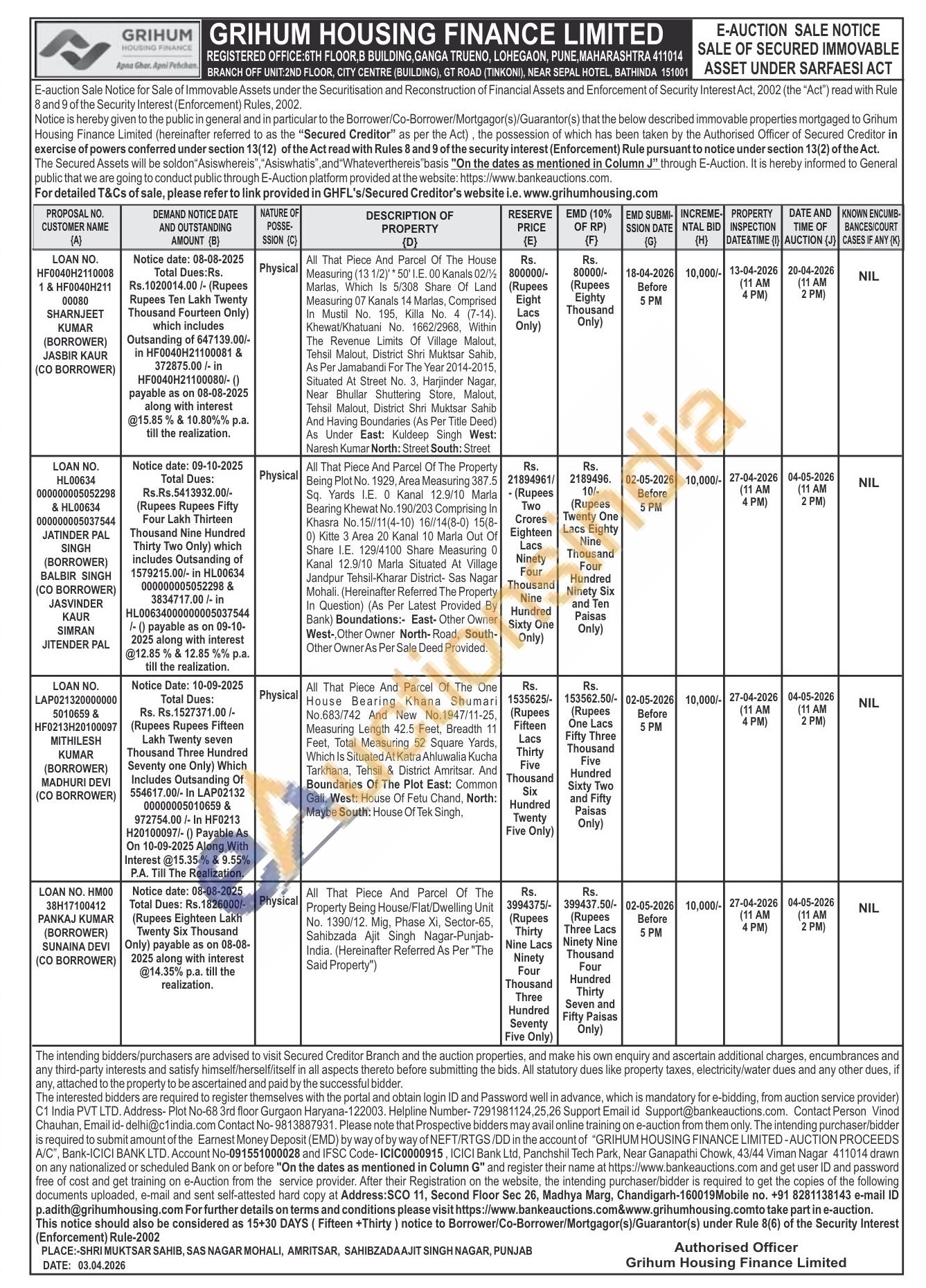 All That Piece And Parcel Of The House Measuring (13-1/2) 50° 1.E. 00 Kanals 02/% Marlas, Which Is 5/308 Share Of Land Measuring 07 Kanals 14 Marlas, Comprised In Mustil No. 195, Killa No. 4 (7-14). Khewat/Khatuani No. 1662/2968, Within The Revenue Limits Of Village Malout, Tehsil Malout, District Shri Muktsar Sahib, As Per Jamabandi For The Year 2014-2015, Situated At Street No. 3, Harjinder Nagar, Near Bhullar Shuttering Store, Malout, Tehsil Malout, District Shri Muktsar Sahib And Having Boundaries (As Per Title Deed) As Under East: Kuldeep Singh West: Naresh Kumar North: Street South: Street