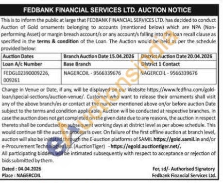 Fedbank Financial Services Ltd Gold Auctions Auction in Chennai