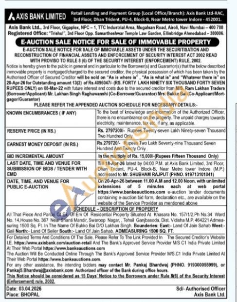 All That Piece And Parcel Of Ex. Of Em Of Residential Property Situated At Khasara No. 157/1/2 Ph No.34 Ward No. 14, House No. 367 Near Shanti Mandir, Swaroop Nagar,, Tehsil Ganjbasoda, Dist. Vidisha M.P. 464221 Admea-suring 1500 Sq. Ft. In The Name Of Bukko Bai D/O Lakhan Singh. Bounderies: East:-Land Of Jain Sahab West-Galil North:-Land Of Seller South:- Land Of Jain Sahab ADMEASURING 1500 SQ. FT.
