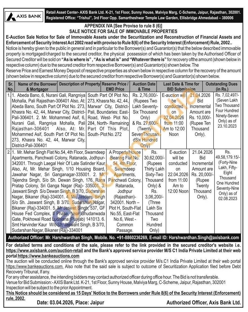 • Auction Type :  SARFAESI Auction