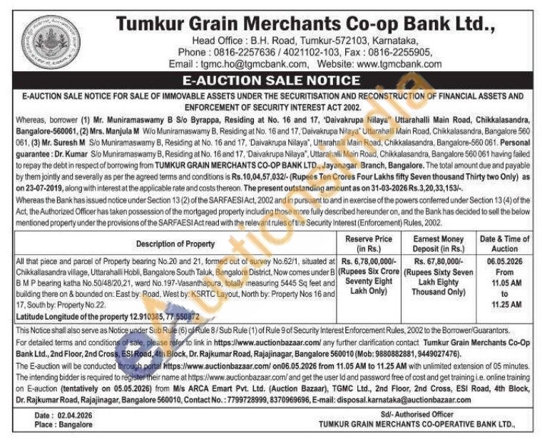 All that piece and parcel of Property bearing No.20 and 21, formed out of survey No.62/1, situated at Chikkallasandra village, Uttarahalli Hobli, Bangalore South Taluk, Bangalore District, Now comes under B BMP bearing katha No.50/48/20,21, ward No. 197-Vasanthapura, totally measuring 5445 Sq feet and building there on