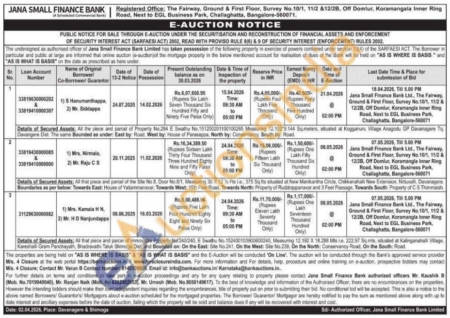 Details of Secured Assets: All that piece and parcel of the Site No.8. Door No.8/1, Measuring 30 X 12% Fts Le., 375 Sq.fts situated at New Manikantha Circle, Chikkanahalli New Extension, Nittuvalli, Davanagere. Boundaries as per below: Towards East: House of Yallammanavar, Towards West: 15th Feet Road, Towards North: Property of Ruddrappanavar and 3 Feet Passage, Towards South: Property of CS Thimmaish