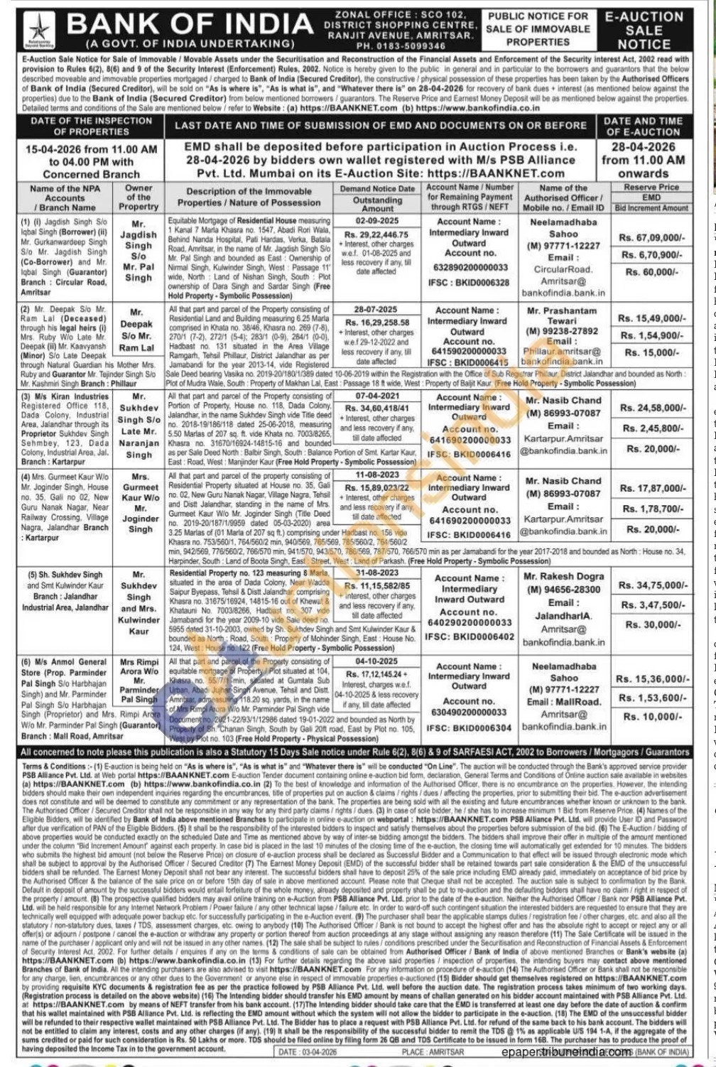 Equitable Mortgage of Residential House measuring 1 Kanal 7 Marla Khasra no. 1547, Abadi Rori Wala, Behind Nanda Hospital, Pati Hardas, Verka, Batala Road, Amritsar, in the name of Mr. Jagdish Singh Slo Mr. Pal Singh and bounded as East: Ownership of Nirmal Singh, Kulwinder Singh, West: Passage 11 wide, North Land of Nishan Singh, South Plot ownership of Dara Singh and Sardar Singh (Free Hold Property Symbolic Possession)