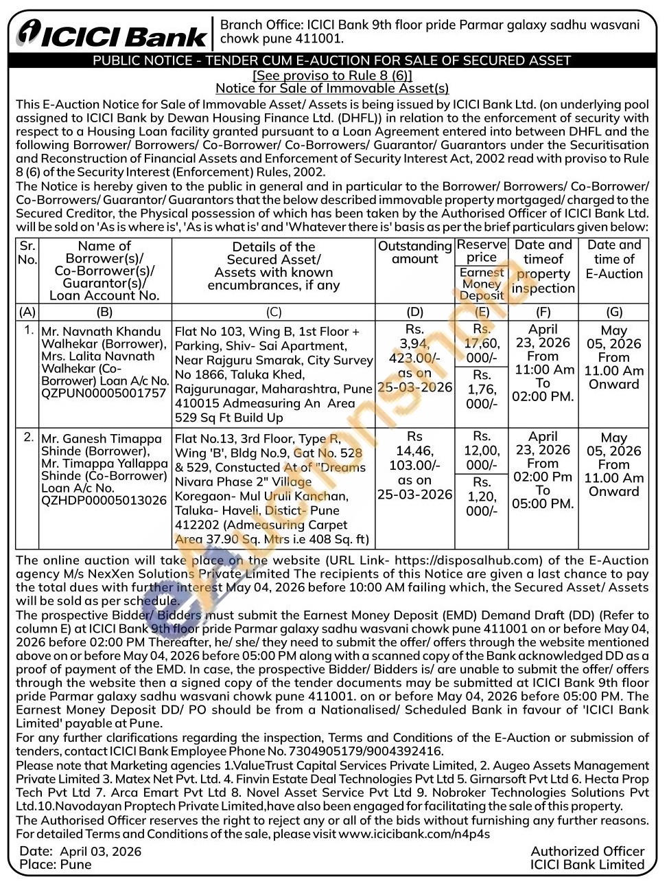 Flat No 103, Wing B, 1st Floor + Parking, Shiv- Sai Apartment, Near Rajguru Smarak, City Survey No 1866, Taluka Khed, Rajgurunagar, Maharashtra, Pune 410015 Admeasuring An Area 529 Sq Ft Build Up