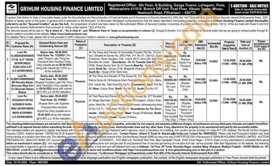 All That Piece And Parcel Of The Property House No. 277 Situated At Vilage Barmala, P.H.No. 53, Tehsil Bhikangaon, District Khar-gone, Ward No. 01, Gram Panchayat Bamnala, Admeasuring Area 53.6x13.6 Ft., Total Area 763 5q. Ft. Boundaries As Per Docu ments:- East: Common Road West: House Of Ramesh North: House Of Punam South: House Of Ramu