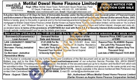 Flat No. C/D-301 Area Adm 700Sq Ft At Aastha Residency New Bamroli Road 394221 Chorasi Surat Gujarat