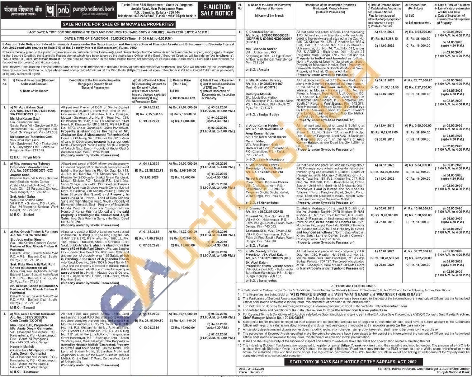 All that piece and parcel of 10 Decimal Bastu Land along with 2 storied residential building thereon, in the name of Borrower Golam Pir Mallick situated at Mouza Naskarpur, J.L. No. 99, Pargana-Magura, Touzi No. 151, LR Dag No. 130, LR Khatian No. 881, under Jurisdiction of Naskarpur Grampanchyat, P.S. - Nodakhali, Dist-South 24 Pargans, West Bengal, Pin-743 377. Near Kantapukur Primary School. Bounded by: By North Naskarpur Road, By South Owners Shali Land, By East: Property of Nabi Box Mallick, By West: By Raniahat Road.