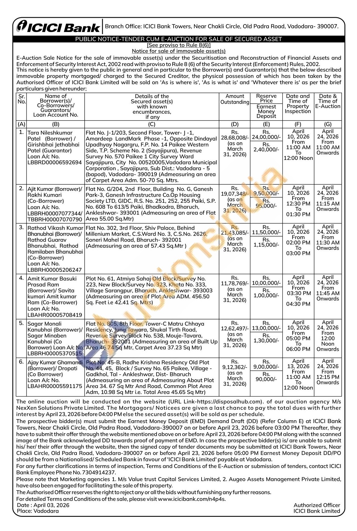 Flat No. J-1/203, Second Floor, Tower-J-1, Amardeep LandMark Phase-1, Opposite Dindayal Upadhyay Nagargru, F.P. No. 14 Paikee Western Side, T.P. Scheme No. 2 (Sayajipura), Revenue Survey No. 570 Paikee 1 City Survey Ward Sayajipura, City No. 00520005, Vadodara Municipal Corporation, Sayajipura. Sub Dist.: Vadodara - 5 (bapod), Vadodara-390019 (Admeasuring an area of Carpet Area Adm. 50-70 Sq. Mtrs.