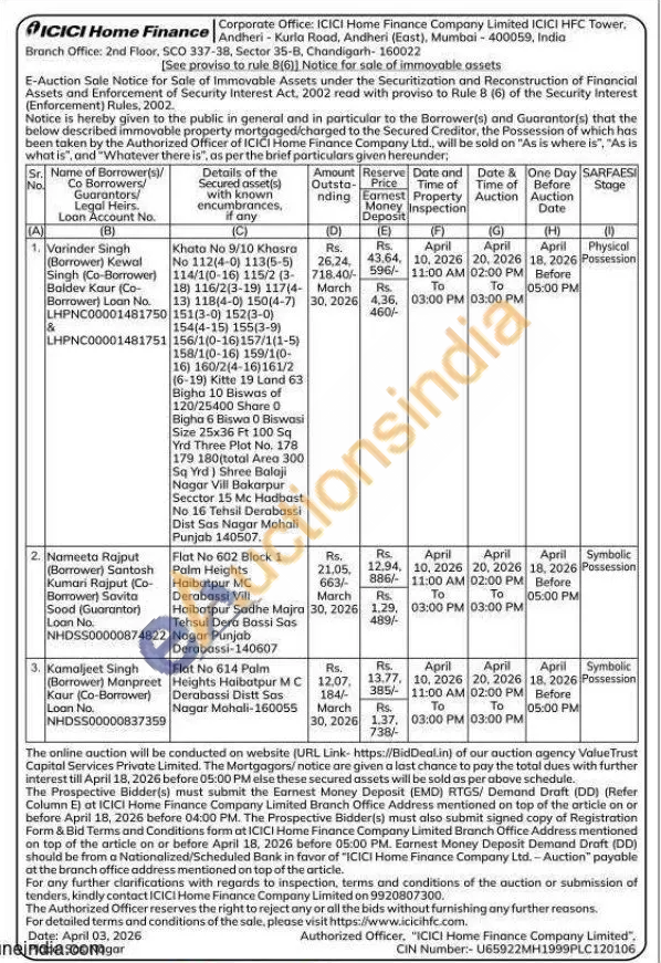 Khata No 9/10 Khasra No 112(4-0) 113(5-5) 114/1(0-16) 115/2 (3-18) 116/2(3-19) 117(4-13) 118(4-0) 150(4-7) 151(3-0) 152(3-0) 154(4-15) 155(3-9) 156/1(0-16)157/1(1-5) 158/1(0-16) 159/1(0-16) 160/2(4-16)161/2 (6-19) Kitte 19 Land 63 Bigha 10 Biswas of 120/25400 Share 0 Bigha 6 Biswa 0 Biswasi Size 25x36 Ft 100 Sq Yrd Three Plot No. 178 179 180(total Area 300 Sq Yrd) Shree Balaji Nagar Vill Bakarpur Secctor 15 Mc Hadbast No 16 Tehsil Derabassi Dist Sas Nagar Mohali Punjab 140507.