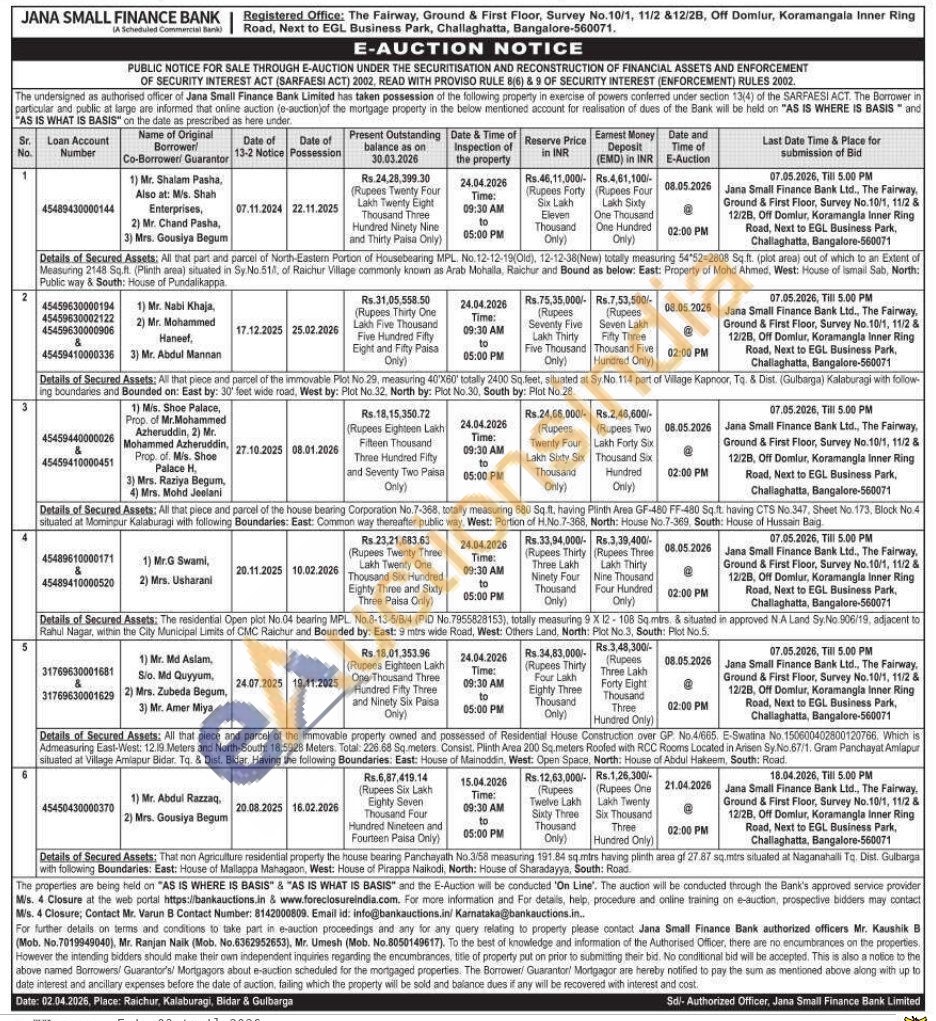 authorized officers Mr. Kaushik B (Mob. No.7019949040), Mr. Ranjan Naik (Mob. No.6362952653), Mr. Umesh (Mob. No.8050149617)