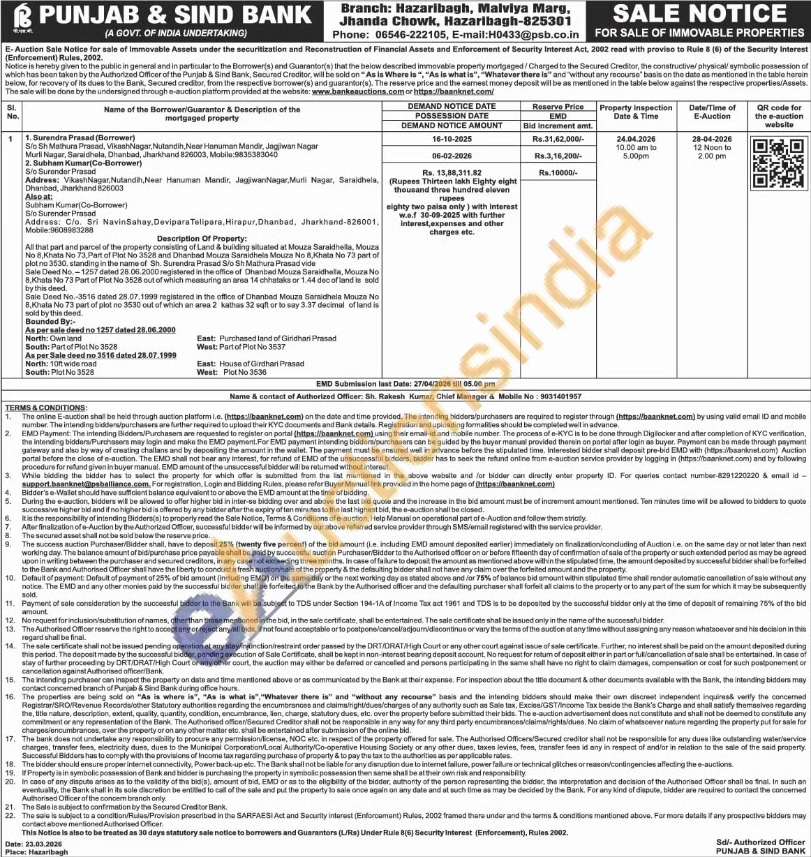 contact of Authorized Officer: Sh. Rakesh Kumar, Chief Manager & Mobile No: 9031401957