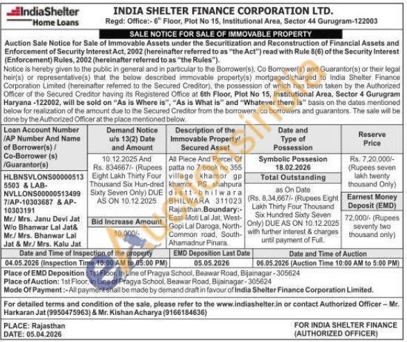 Authorized Officer - Mr. Harkaran Jat (9950475963) / Mr. Kishan Acharya (9166184636)