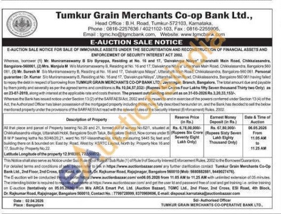 Al that piece and parcel of Property besning No.20 and 21, furmed out of survey No.6211, situated at Chikkallasandru whage, Uttarshad Hobl, Bangalore South Taluk, Bangalore District. Now comes under 5 BMP bearing katha No 5014820,21, ward No. 197-Vasanthapura totally measuring 5445 50 feet and building there on & bounded on: East by Road, Weal by KSRTC Layout, North by Property Nos 16 and 17, South by Property No.22.